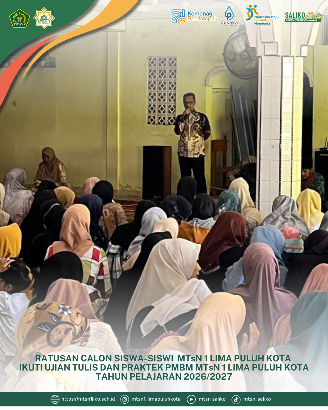Sebanyak ratusan calon peserta didik mengikuti ujian tulis dan ujian praktik dalam rangka Penerimaan Murid Baru Madrasah (PMBM) di MTsN 1 Lima Puluh Kota pada Rabu, 11 Maret 2026. Kegiatan seleksi ini...
